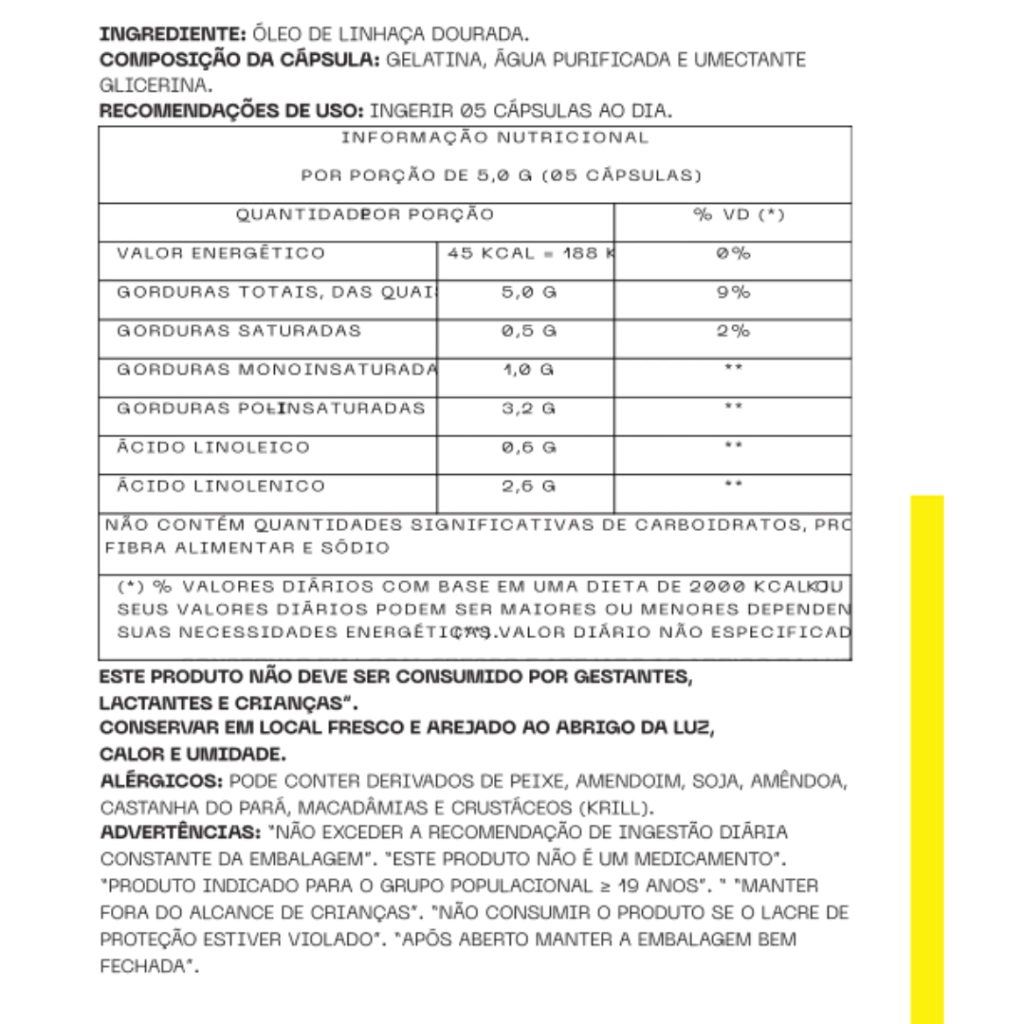 Ingredientes: Óleo de Linhaça dourada.